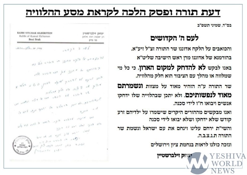 HaGaon HaRav Yitzchok Zilberstein is urging the attendees of Sunday’s levaya in Bnei Brak for sar hatorah HaRav Chaim Kanievsky zt”l to use extreme caution to ensure that nobody gets hurt.