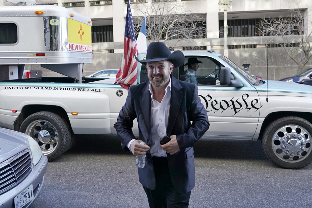Griffin, a 48-year-old former rodeo rider and former pastor, helped found a political committee called Cowboys for Trump. He had vowed to arrive at the courthouse on horseback. Instead, he showed up on Monday as a passenger in a pickup truck that had a horse trailer on the back.