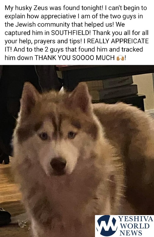 Asked what he would like as a reward for finding and returning her dog, the Chaveirim member had one message for the woman: “I do not want anything in return for you. Return the favor to somebody else; be kind to the next person.”