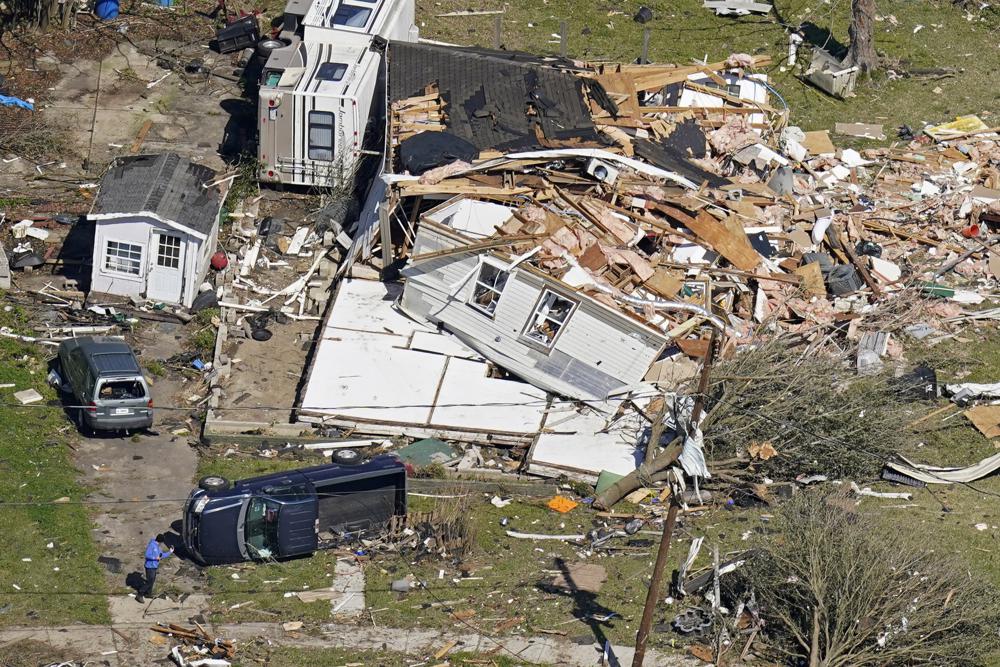In Arabi, debris hung from electrical wires and trees amid destroyed houses. Power poles were down, forcing emergency workers to walk slowly through darkened neighborhoods checking for damage early Wednesday.