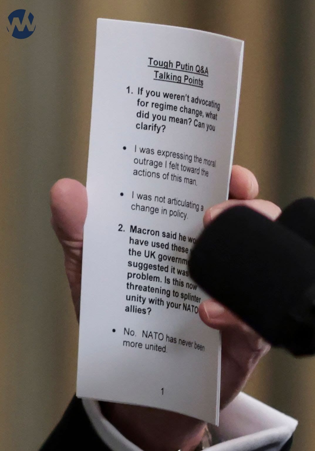 The cheat sheet also gave Biden answers for a question about NATO.