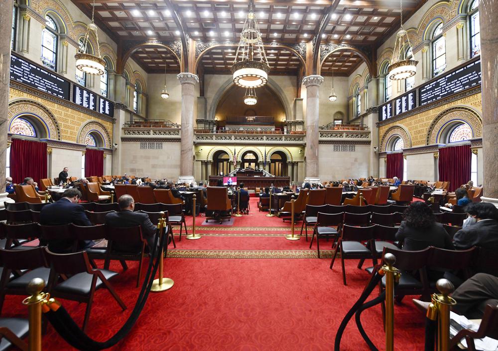 Some Democrats voted against parts of the spending plan, in part for cracking down on people with repeated low-level offenses. Those lawmakers also called for more spending on home care workers rather than spending an eventual $850 million supporting a new $1.4 billion stadium for the Buffalo Bills, which is owned by billionaires Terry and Kim Pegula.