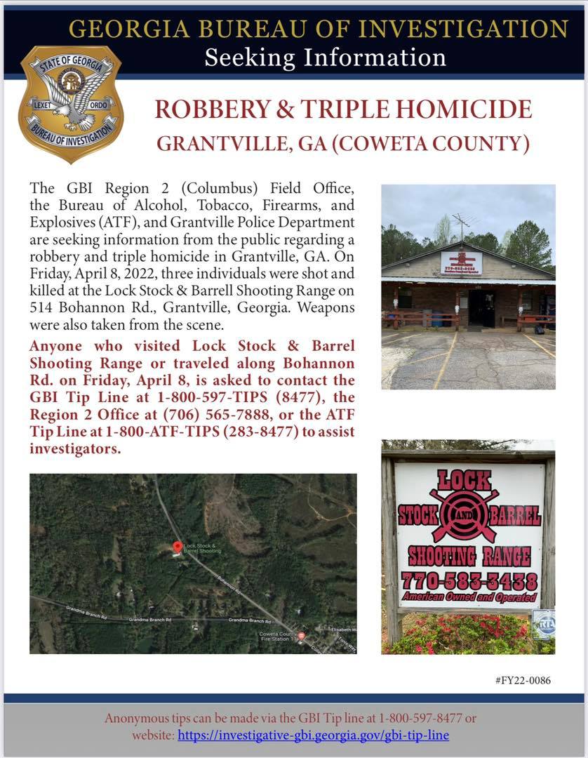 “ATF and our law enforcement partners will work tirelessly to bring the killer(s) to justice,” ATF Atlanta Field Division Special Agent in Charge Benjamin P. Gibbons said in a statement. “The brutality of these senseless murders along with the fact that these killer(s) have acquired additional firearms makes solving this case our top priority.”
