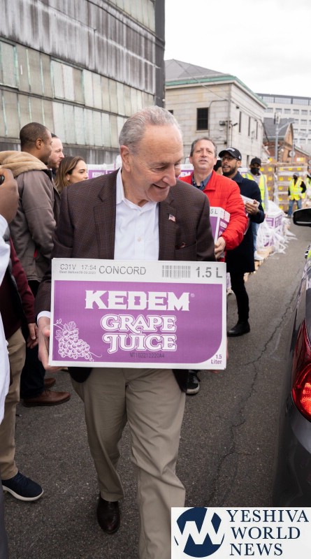 On hand were a number of elected officials who came to show their support, including the US Senate Majority Leader, Senator Charles Schumer. “No one works harder to deliver for the poor and needy than Senator Schumer. He delivered so much for poor, large families in Williamsburg and throughout the country. We were so honored to have the senator’s participation and support. He’s a real hands-on leader: He not only leads, but also participates in the actual distribution of food for the needy. The ever-present leader never stops to amaze me and everyone,” said Rabbi David Niederman, President of the UJO of Williamsburg and North Brooklyn.