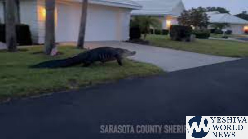 Sheriff’s deputies captured video of a large alligator crawling through a front yard in Florida before making its way into a community lake.