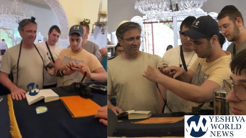 The boys and tourist, who identified himself as Mark, struck up a conversation, during which the bochurim convinced him to lay tefillin for the first time in over five decades.