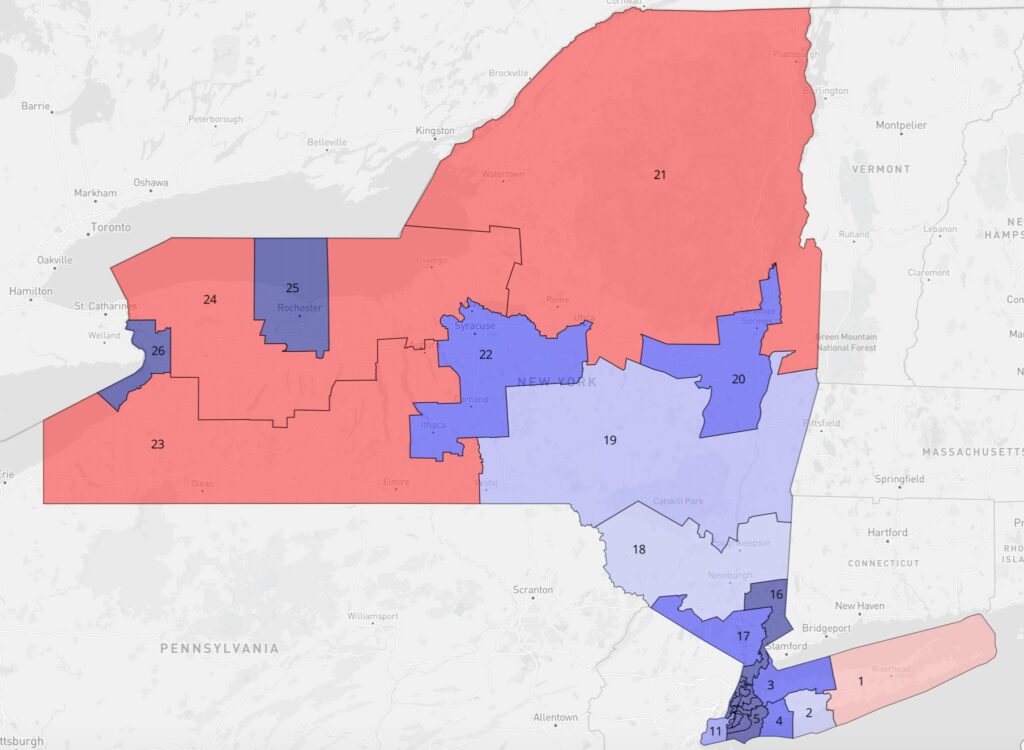 A group of voters filed a lawsuit asking federal judges to intervene in New York’s redistricting battle after the state’s highest court ruled that district maps crafted by the state Legislature had been improperly gerrymandered to favor Democrats. Those maps would have given Democrats a clear edge in 22 of the state’s 26 congressional districts.