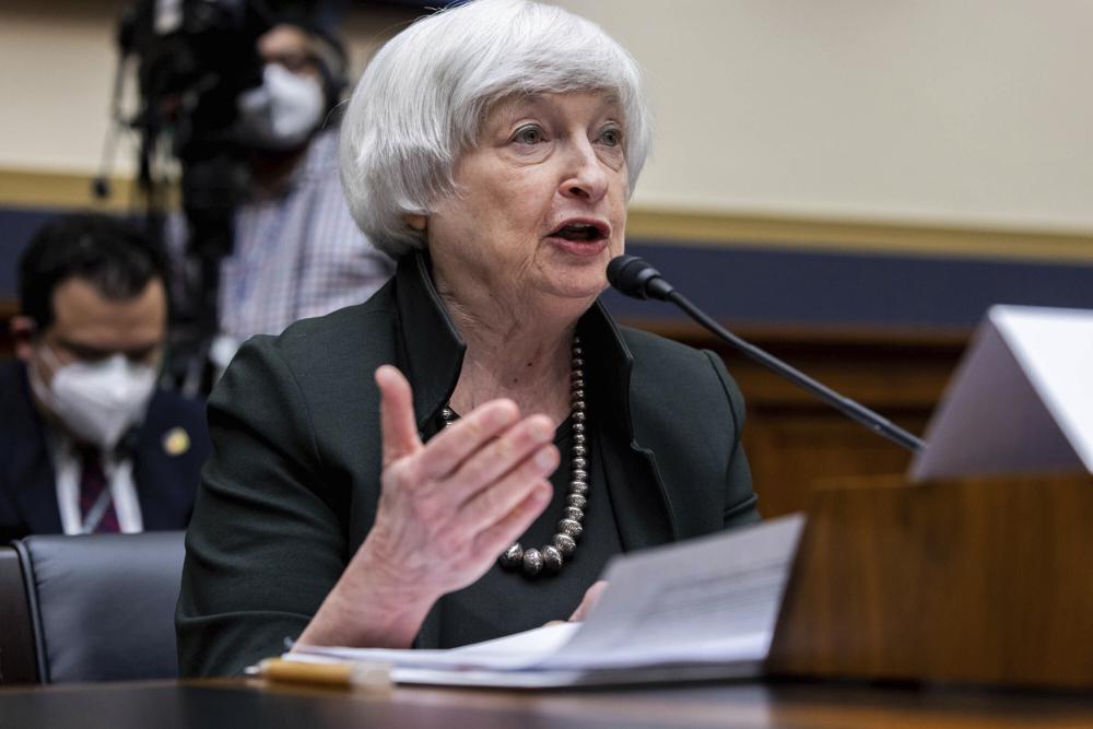 Treasury Secretary Janet Yellen testifies during a House Committee on Financial Services hearing on the Annual Report of the Financial Stability Oversight Council, Thursday, May 12, 2022 on Capitol Hill in Washington. (Graeme Jennings/Pool photo via AP)