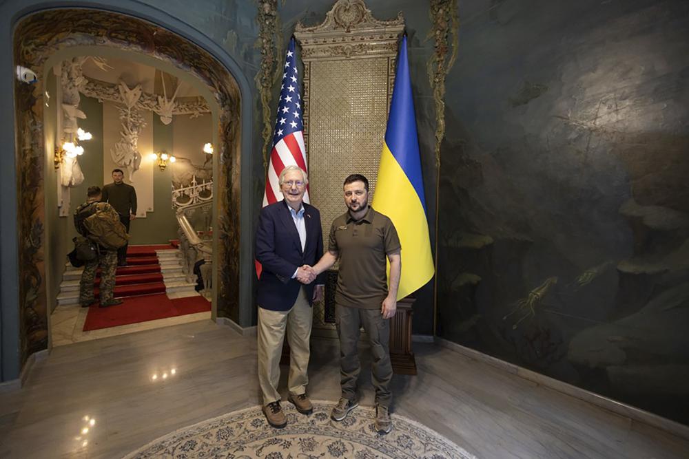 Senate Republican leader Mitch McConnell and a delegation of GOP senators met with Ukrainian President Volodymyr Zelenskyy in Kyiv during an unannounced visit Saturday, delivering the latest show of American solidarity with the country at war with Russia.