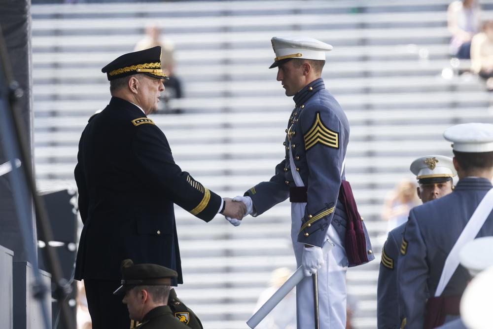 Mark A. Milley, Chairman of the Joint Chiefs of Staff, shakes the hands of West Point graduates as they receive their diplomas during the graduation ceremony of the U.S. Military Academy class of 2022 at Michie Stadium on Saturday, May 21, 2022, in West Point, N.Y. (AP Photo/Eduardo Munoz Alvarez)