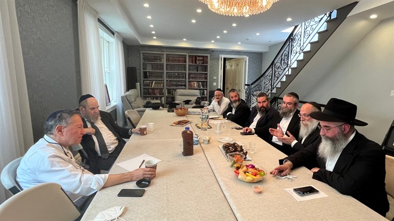 The meeting was hosted by HaRav Moshe Kotlarsky, director of the International Conference of Chabad-Lubavitch Emissaries and Vice-Chairman of Merkos L’lnyonei Chinuch, and attended by businessman and philanthropist George Rohr, a major donor for kehillos and mosdos in Ukraine for the past 32 years, and prominent Ukraine Rabbanim including the Rav of Dneiper, Rav Shmuel Kamintesky, Rav of Odesasa, Rav Avraham Wolf, Rav of Kharkiv, Rav Moshe Moskowitz, Rav of western Ukraine, Rav Shlomo Wilhem of Zhytomyr, and others.