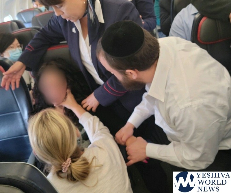 Amid the commotion, Central Jersey Hatzolah’s Yosef Reiner sprang into action. He rushed to the patient’s assistance, working to stabilize her for more than half an hour as the pilots attempted to get back to a gate.