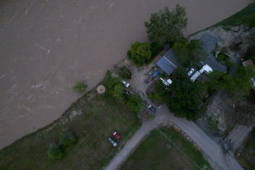 At a cabin in Gardiner, Parker Manning of Terre Haute, Indiana, got an up-close view of the roiling Yellowstone River floodwaters just outside his door. Entire trees and even a lone kayaker streamed by.