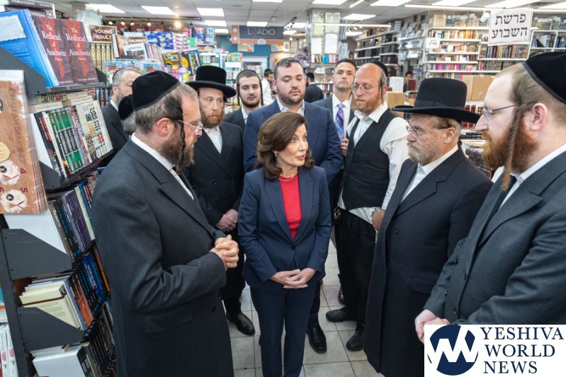 Boro Park residents greeted Governor Kathy Hochul with an outpouring of support and tangible excitement on Monday as she toured the 13th Avenue’s shopping corridor, notably stopping at the iconic Eichler’s Judaica.