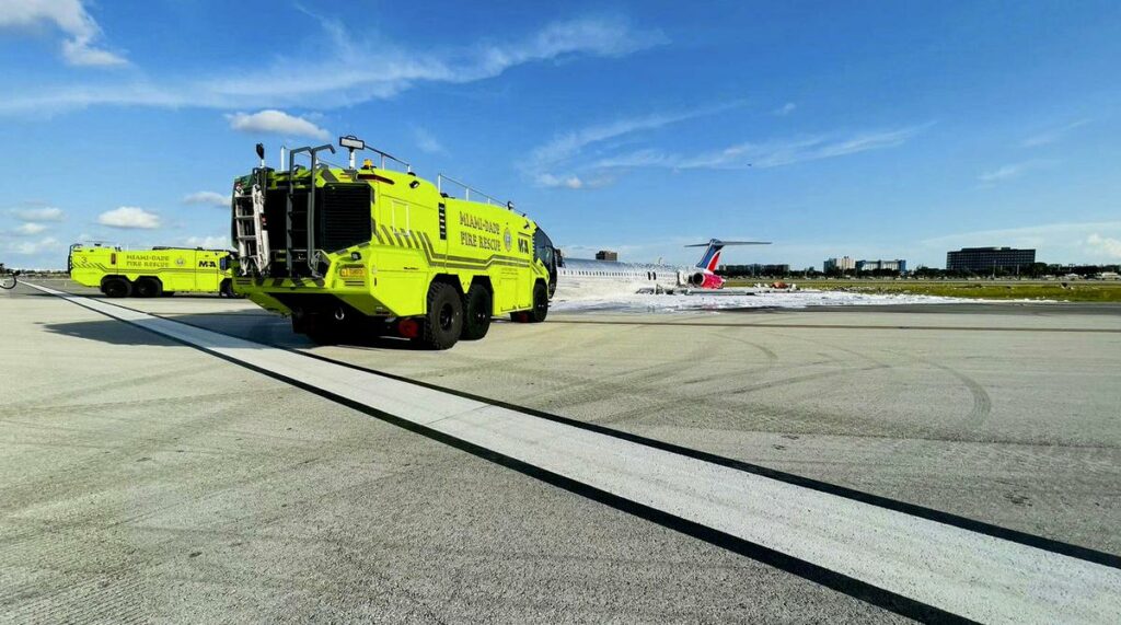Miami-Dade Fire Rescue posted on Twitter that fire crews had placed the fire under control and were mitigating fuel spillage.