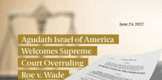 Agudath Israel of America Welcomes Supreme Court Overruling Roe v. Wade
