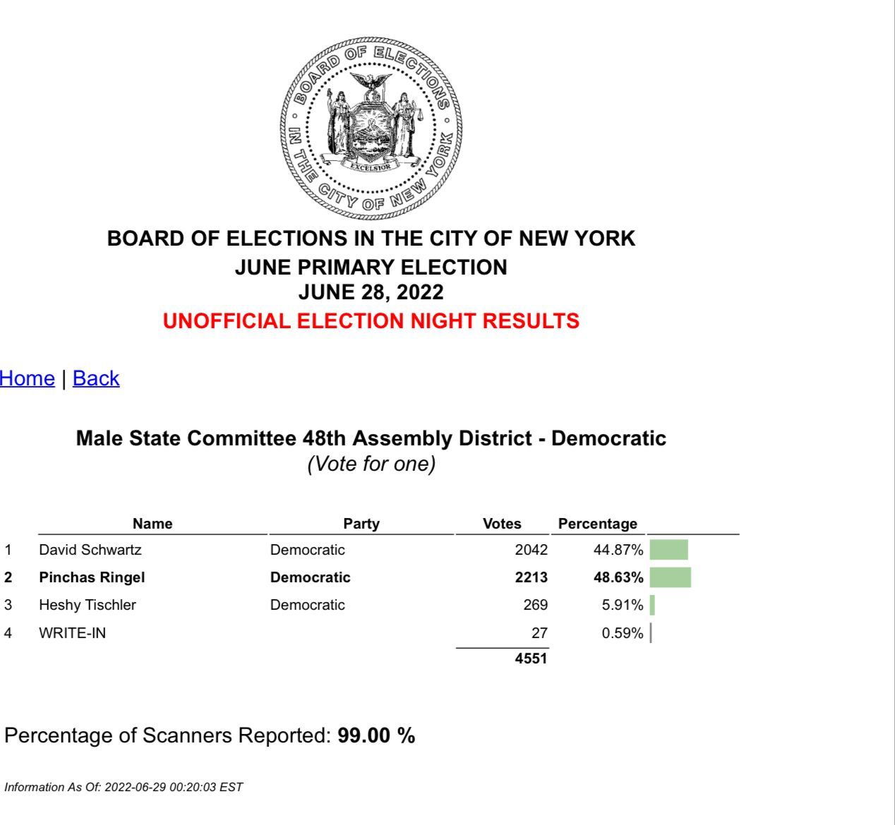 Ringel won by 171 votes. Adams nmust be happy. He promoted Ringel to get back at Schwartz who backed Yang. Ringle didnt get my viote. Anyoone connected to deBlasio is suspect to me. Let’s hope Ringel is loyal to us frum Yidden this time and not the mayor’s office.
