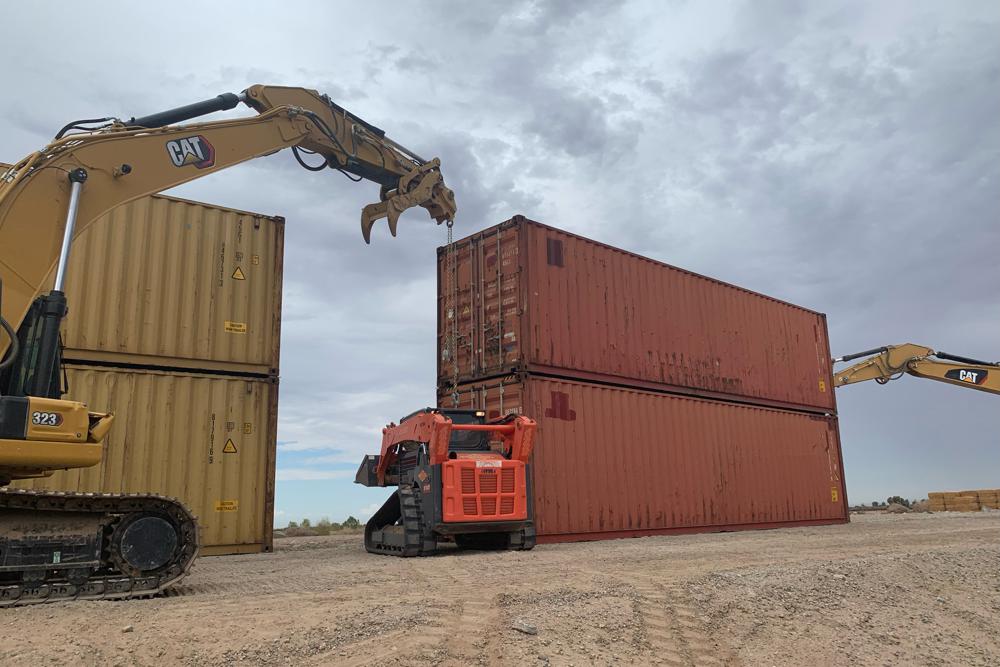 The move by Arizona comes without explicit permission on federal land, with state contractors starting to move in 60-foot-long (18.3-meter-long) shipping containers and stacking two of the 9-foot-tall (2.7-meter-tall) containers on top of each other early Friday. They plan to complete the job within days, and the containers will be topped with 4 feet (1.2 meters) of razor wire, said Katie Ratlief, Republican Gov. Doug Ducey’s deputy chief of staff.