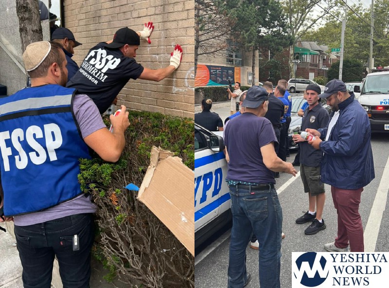 Following the photographing of the evidence and other clues being gathered by police officers, Shomrim members removed the graffiti.