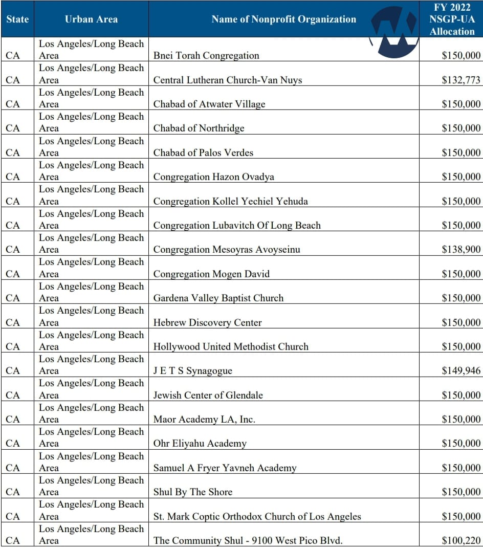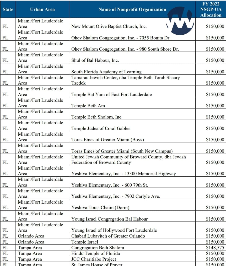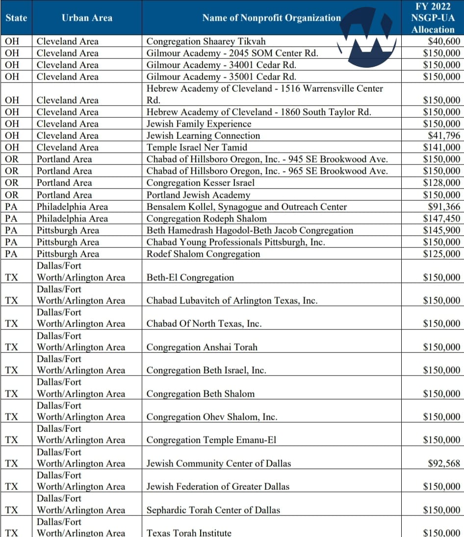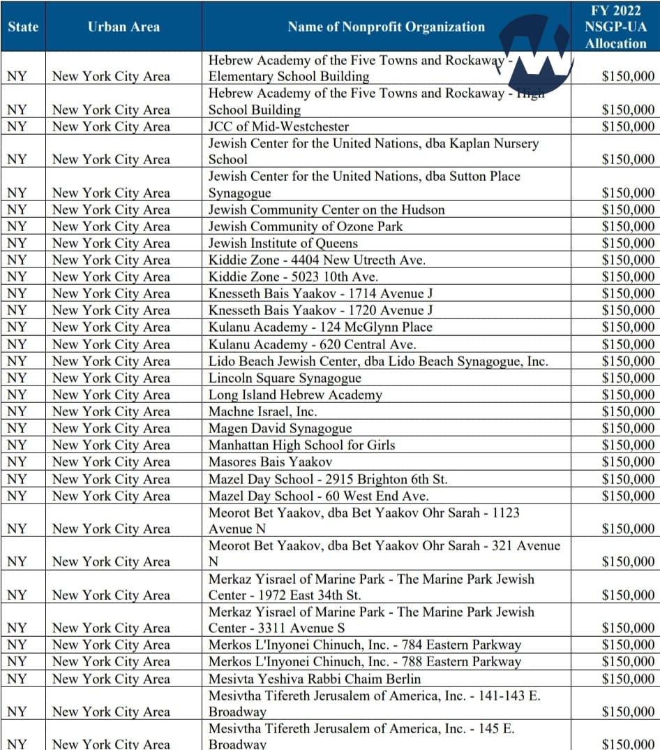 The Federal Emergency Management Administration (FEMA), a branch of the Department of Homeland Security, announced the recipients of funding under the FY 2022 Nonprofit Security Grant Program, which include dozens of shuls, yeshivos, schools, and organizations across the United States.