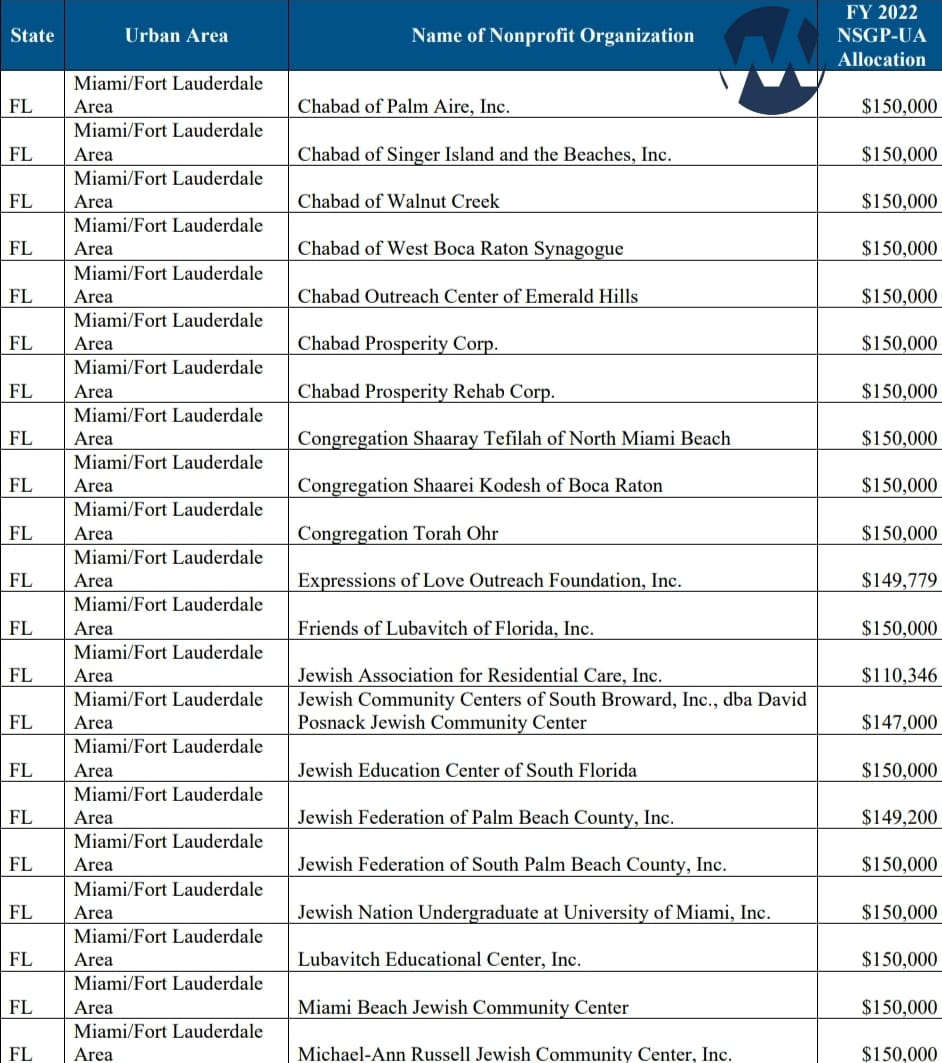 FEMA said the Nonprofit Security Grant Program “provides $250,150,000 in funding support for facility hardening and other physical security enhancements and activities to nonprofit organizations that are at a high risk of a terrorist attack.”