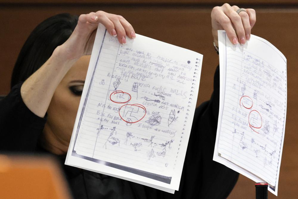 The swastikas were drawn on English assignments presented by the defense — they wanted the symbols blacked out while maintaining other troubling drawings they contained. After Scherer rejected the lawyers’ attempt to redact the swastikas, they still presented the assignments. The jury saw the swastikas, but neither side singled them out.