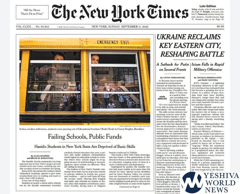 As I’m sure you’ve already seen, the Times wrote a shameless attack on religious Jewish schools, particularly chasidish ones – a coordinated attack with New York State which released new “substantial equivalency” standards just this past Friday. No, the timing is not a coincidence, no matter how hard they try to say it is.