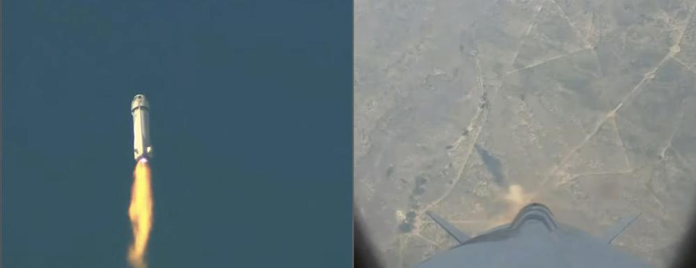 The New Shepard rocket was barely a minute into its flight from West Texas when bright yellow flames shot out from around the single engine at the bottom. The capsule’s emergency launch abort system immediately kicked in, lifting the craft off the top. Several minutes later, the capsule parachuted onto the remote desert floor.