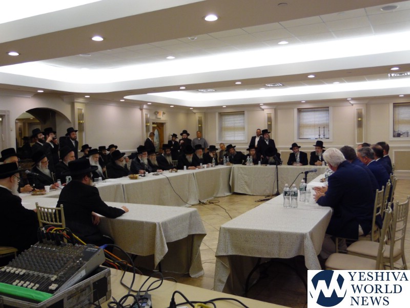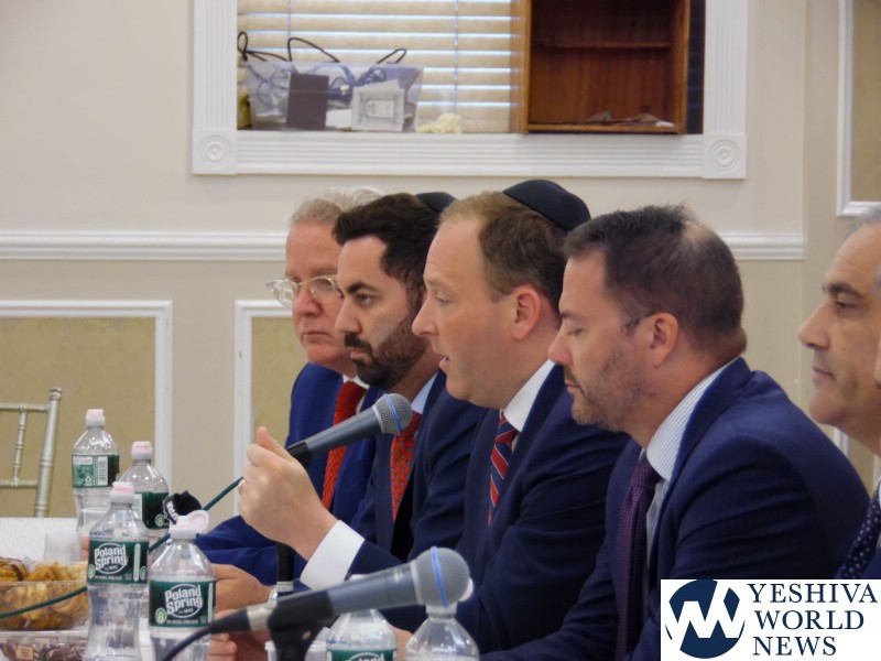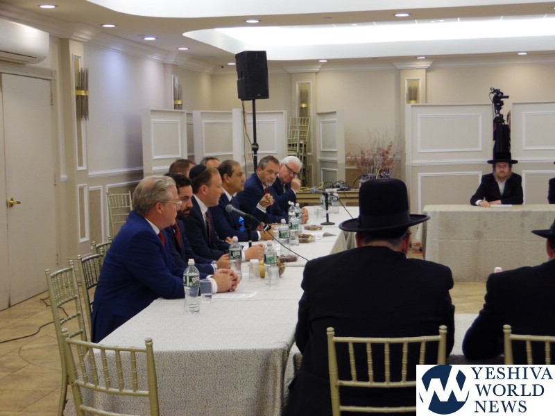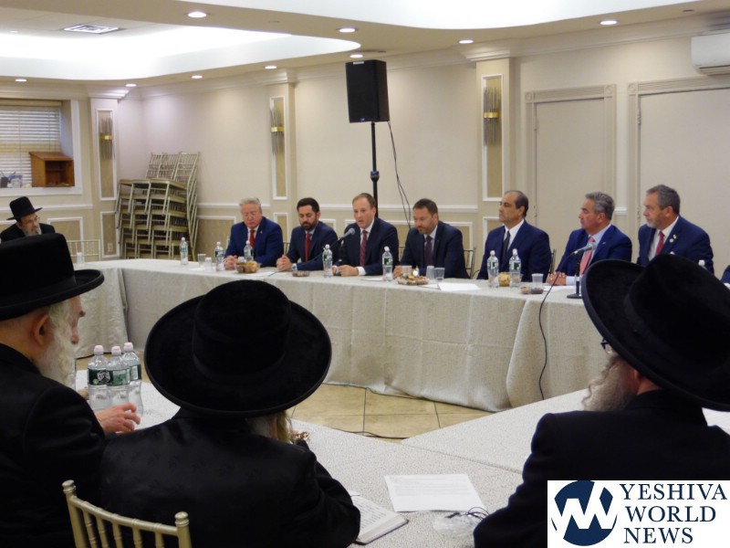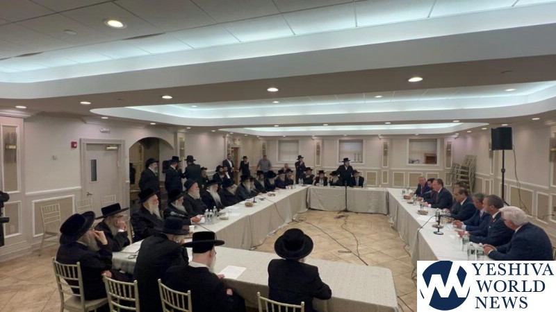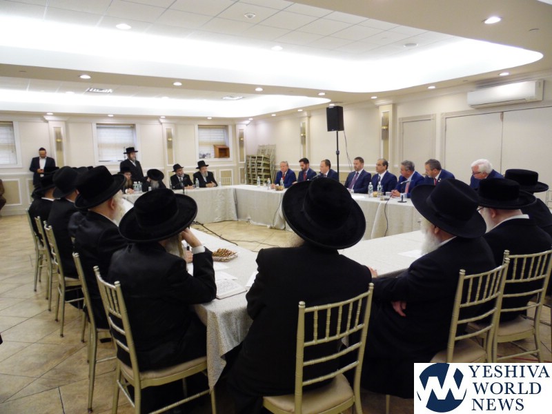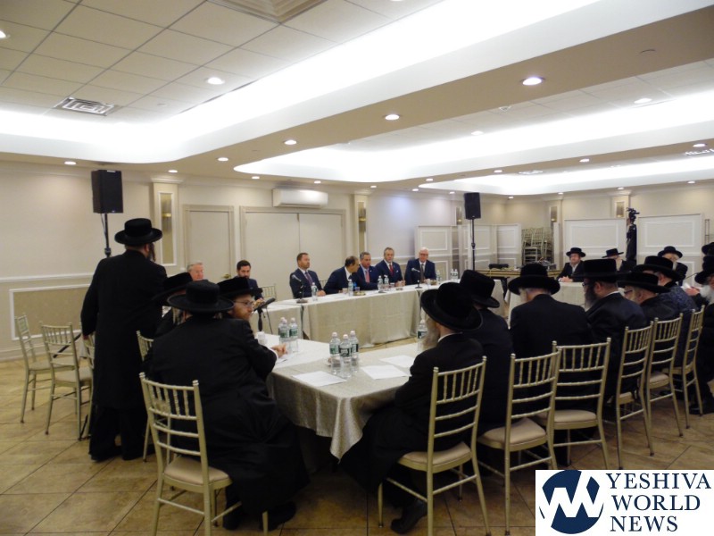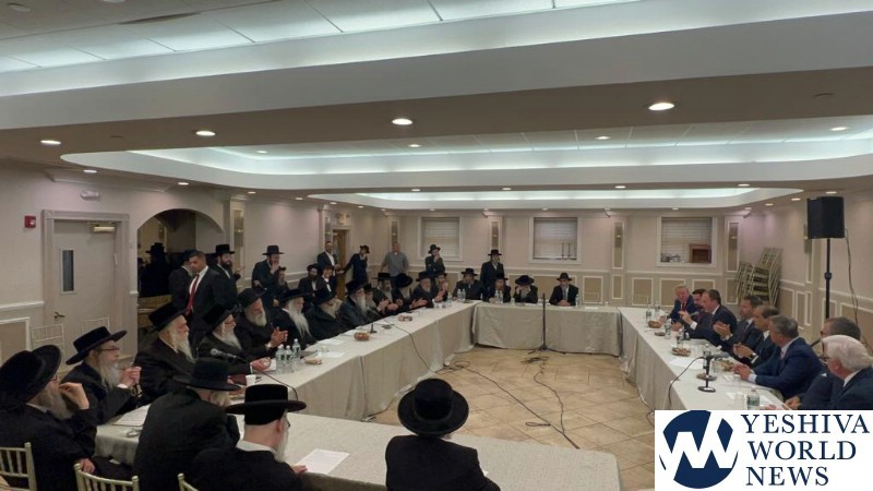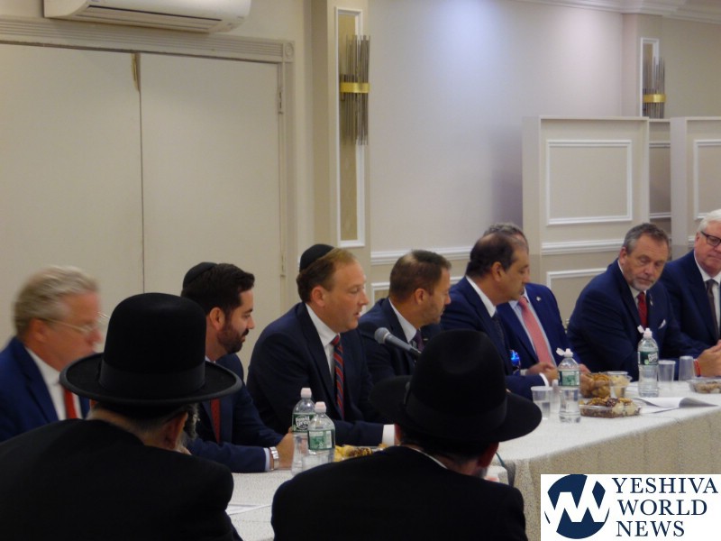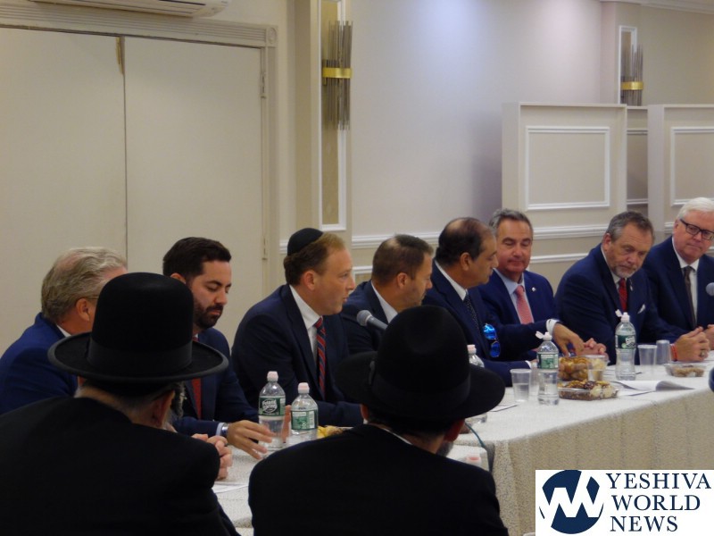 Concluding his visit, Zeldin met with many of the major rabbanim from the Monsey area at a local wedding hall for discussions on combatting the imposition of secular values on the frum community’s education system.