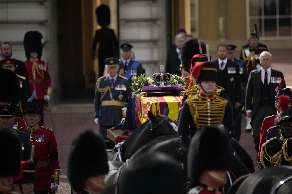 The coffin of Queen Elizabeth II left Buckingham Palace for the last time Wednesday, borne on a horse-drawn carriage and saluted by cannons and the tolling of Big Ben, in a solemn procession through the flag-draped, crowd-lined streets of London to Westminster Hall. There, Britain’s longest-serving monarch will lie in state for the world to mourn.
