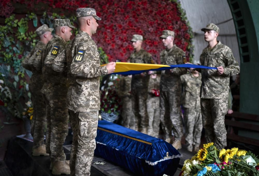 Simonova’s coffin was draped in the blue-and-yellow Ukrainian flag, with a cuddly toy lion on top. Her nom de guerre was “Simba,” like the main character in the Disney cartoon “The Lion King.”