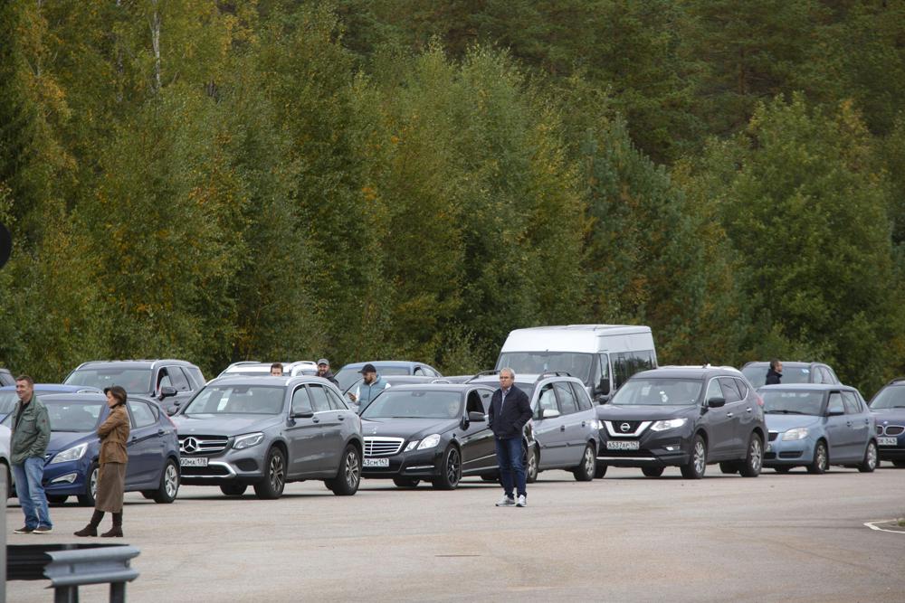 At Vaalimaa, one of the busiest crossings on the border, the line of waiting cars stretched for half a kilometer (a third of a mile), the Finnish Border Guard said.