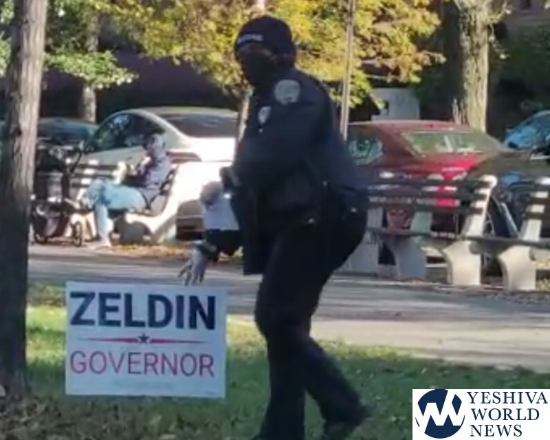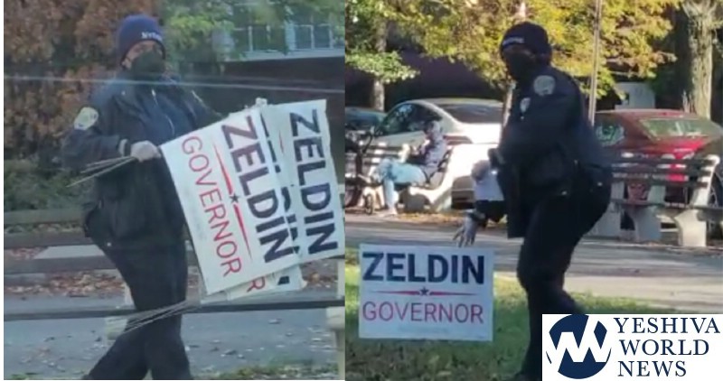 Video going viral showing a person in an official uniform with a badge on Ocean Parkway in Flatbush tearing down flyers supporting Republican gubernatorial candidate Rep. Lee Zeldin has supporters of the GOP nominee and many in the Orthodox Jewish community up in arms.