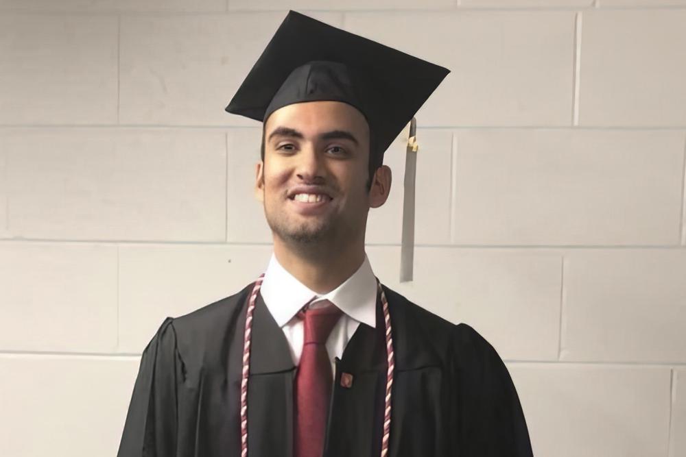 A photo from Prince Abdullah’s Northeastern undergraduate ceremony shows him in cap and gown, clean-shaven, chin lifted and beaming.