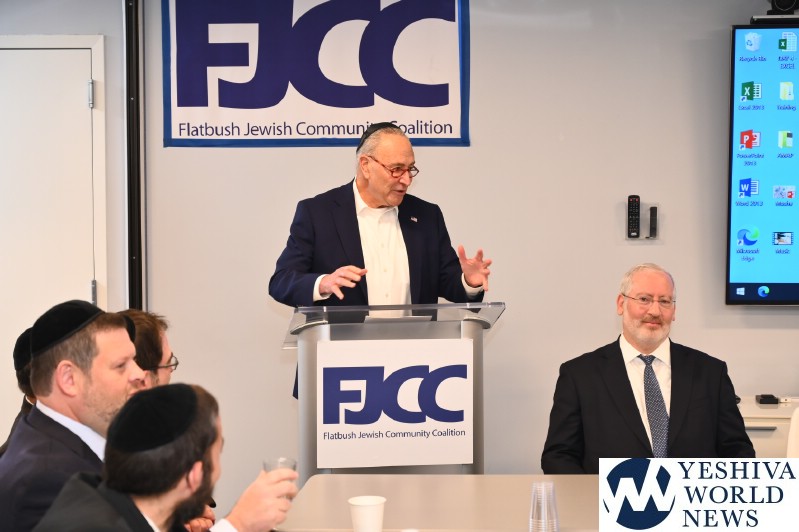 Taking time out of his hectic schedule as the highest-ranking Jewish official in American history, Senate Majority Leader Charles Schumer spoke warmly about starting his career in the area and the long-standing, personal relationships he shares with community leaders and virtually every Jewish institution and organization in Flatbush. Schumer discussed his unique ability in the Senate to advance causes that are crucial to the local Jewish community, most recently advocating for its needs during COVID by securing PPP funding for religious institutions, including many Flatbush yeshivas, and removing a Biden administration cap on the number of allowable dependents per family for stimulus checks, paving the way for significant financial assistance. With anti-Semitism continuing to rear its ugly head in Brooklyn, Schumer also spoke about the millions of dollars he secured for nonprofit security grants, an effort that continues to benefit local yeshivas and shuls of all sizes.