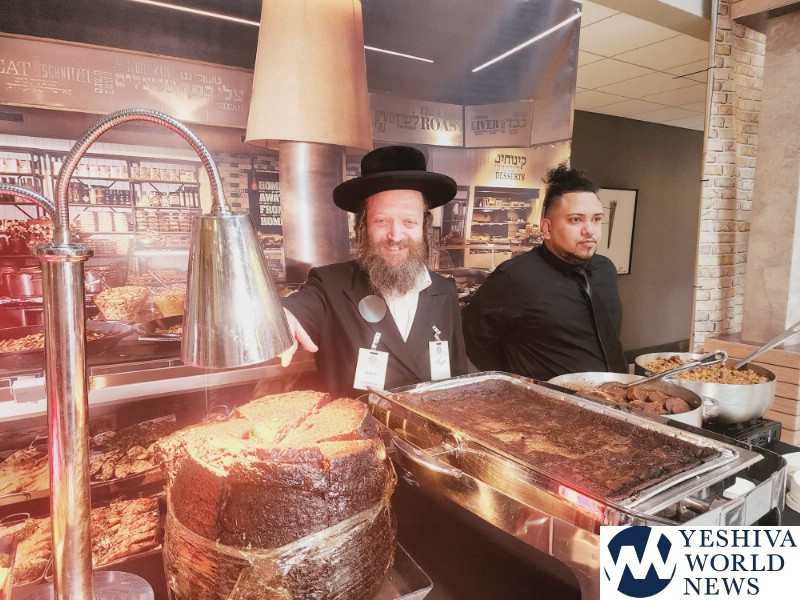 A video that has since gone viral shows the lobby during “toameha” on Friday, retrofitted to look like Meah Shearim neighborhood, including its stores, servers dressed as Yerushalmis, and even pashkevilin hung up on the walls announcing a “kinnus neturei karta.”