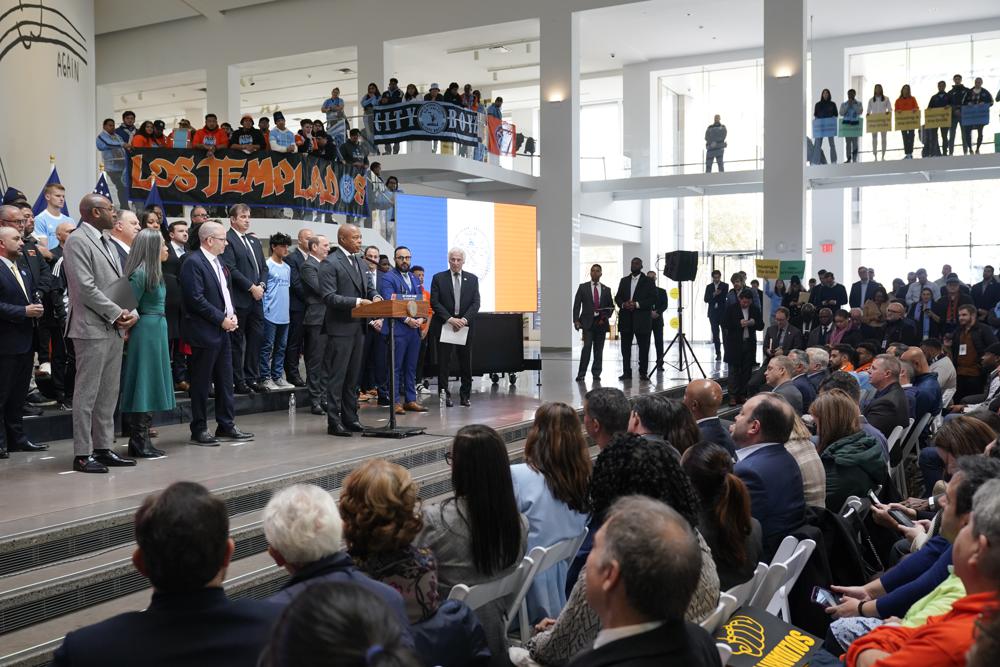 “We have a once-in-a-generation opportunity to create a brand-new neighborhood,” Adams said at a news conference with other elected officials as well as representatives of the MLS and the project’s developers.