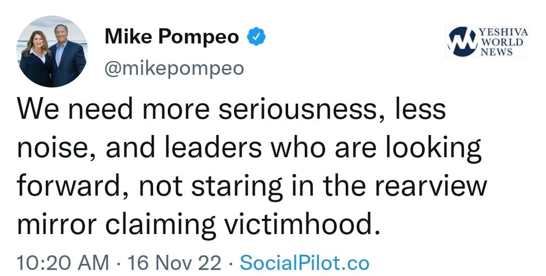 “We need more seriousness, less noise, and leaders who are looking forward, not staring in the rearview mirror claiming victimhood,” Pompeo wrote on Twitter without directly naming Trump.