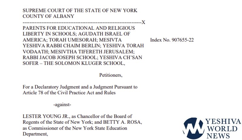 The organizations and yeshivas challenging the State Education Department’s new regulations filed a motion with the Albany Supreme Court seeking a preliminary injunction.