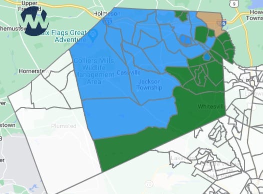 A map of Jackson Township showing the areas that voted for each candidate provides an incredible look at what the Orthodox Jewish community pulled off. In the below graphic, the blue-shaded area represents parts of the township whose majority voted for Marty Flemming, while the green-shaded area shows the neighborhoods that voted for Reina. Orthodox Jewish residents are heavily represented in the green areas.