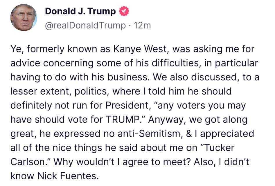 In a second post, Trump again confirmed the meeting, and added some details, insisting that nothing antisemitic was discussed.