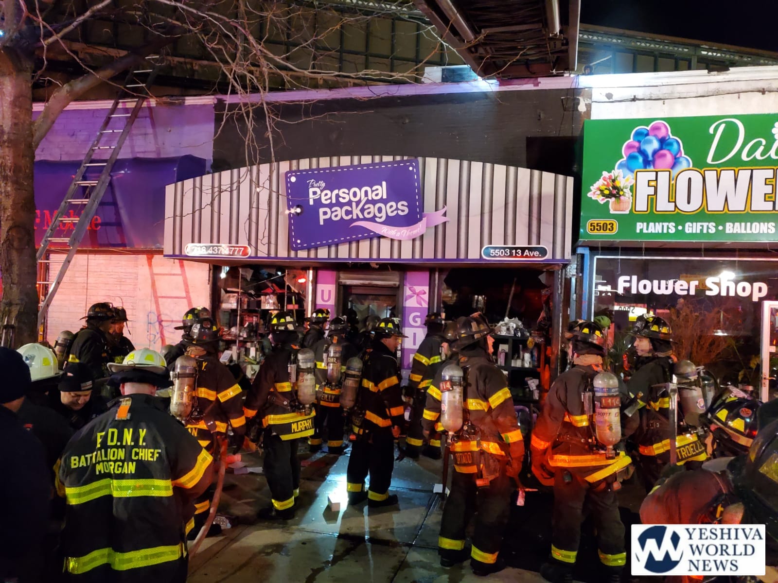 A fire tore through the Personal Packages gift shop on 13th Avenue and 56th Street in Boro Park on Tuesday night, completely destroying the structure.