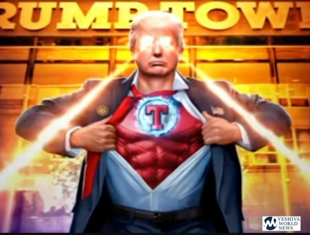 “America needs a superhero,” Trump says in the posted video, which then cuts away to an animated image of him wearing a Superman-esque outfit with the letter “T” on his chest as beams of light shoot out from his eyes.