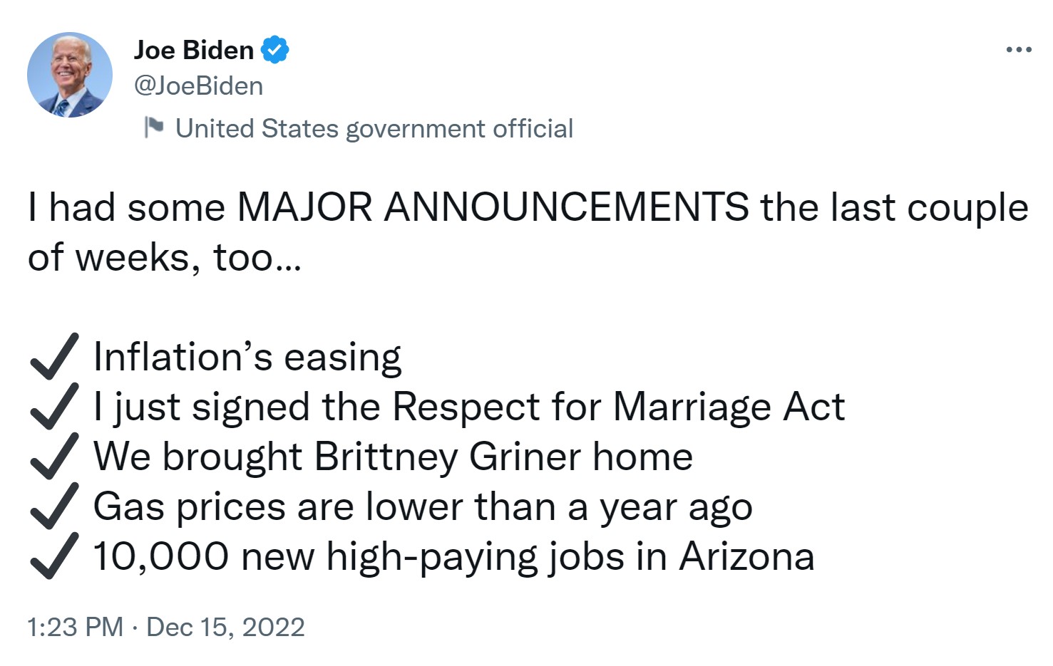 Even President Joe Biden got into the pile-on, tweeting, “I had some MAJOR ANNOUNCEMENTS the last couple of weeks, too.”