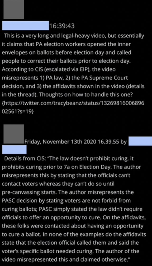 Here, a video was reported by the Election Integrity Project (EIP) at Stanford, apparently on the strength of information from the Center for Internet Security (CIS):