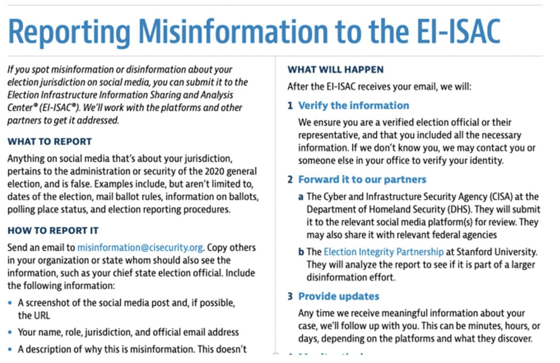 State governments also flagged content. Twitter for instance received reports via the Partner Support Portal, an outlet created by the Center for Internet Security, a partner organization to the DHS.