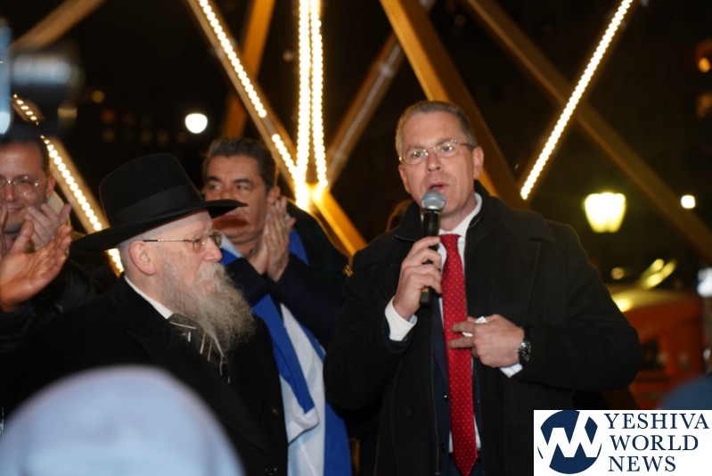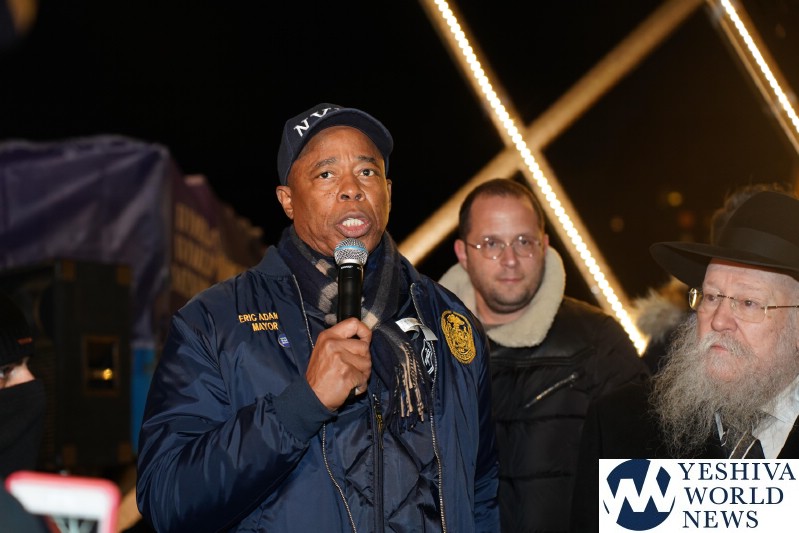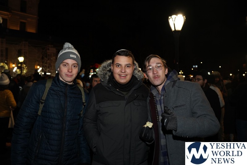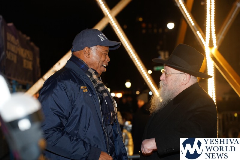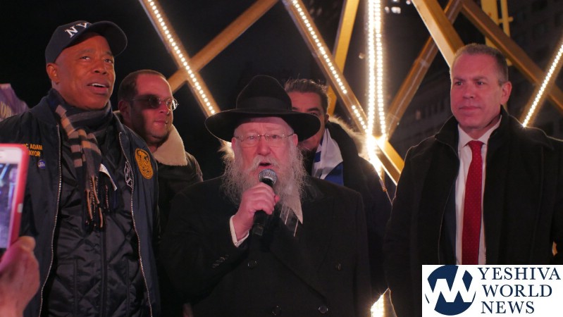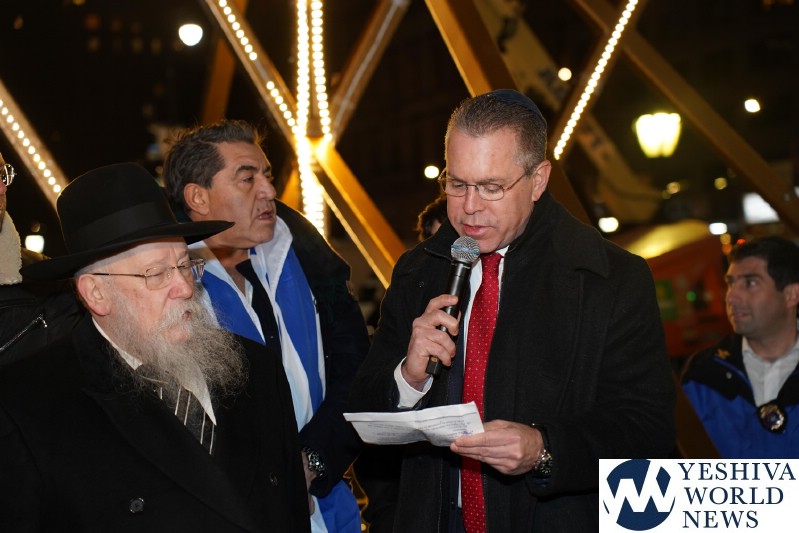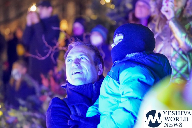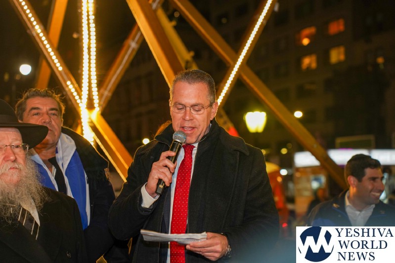 This year, on the first night, Mayor Eric Adams addressed the crowd, followed by Israel’s United Nations Ambassador Gilad Erdan who then recited the three Brachos on the first light of the menorah and lit the first candle. They were hosted by Rabbi Shmuel M. Butman, director of Lubavitch Youth Organization and joined by real estate developer Rotem Rosen.