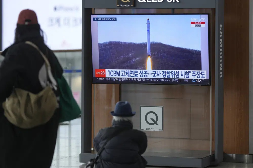 North Korea is also pushing to acquire its first military surveillance satellite. Earlier this month, it said it used two old missiles as space launch vehicles to test a camera and other systems needed for a spy satellite and later released low-resolution satellite photos showing South Korean cities.