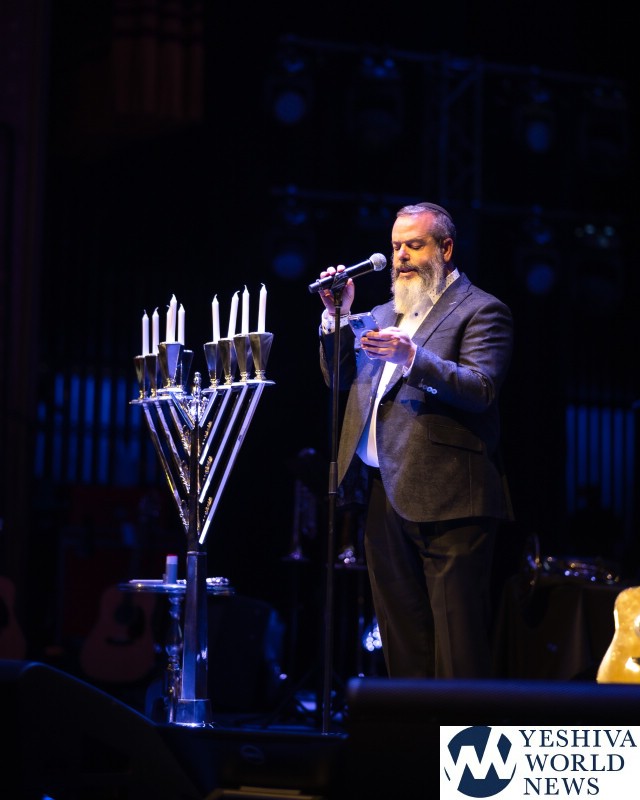 As the concert’s inspirational spirit rose through the evening, Ishay repeated to the crowd an insight he had heard from Harav Shneur Ashkenazi, a well-known lecturer on Torah topics, while at the Rebbe’s Ohel earlier that day: “On the first night of Chanukah when we light just one candle, we recite 3 Brochos, more than on any other night. Sometimes when we want to improve, we attempt to take on many things – too many things simultaneously. The secret is to take on one thing, something small, and to do it well. That’s where the real power lies, which will maintain and expand and grow over time like the lights of the Menorah.”