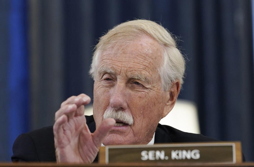 FILE - U.S. Sen. Angus King, I-Maine, speaks during a Senate Rules and Administration Committee hearing to examine the Electoral Count Act, Aug. 3, 2022, on Capitol Hill in Washington. King said Monday, Jan. 9, 2023, that it would be a mistake for the U.S. to withdraw support of Ukraine. The senator, who sits on the armed services committee and recently visited Ukraine, said it would be similar to the U.S.'s failure to get involved in Europe previous to World War II. (AP Photo/Mariam Zuhaib, File)